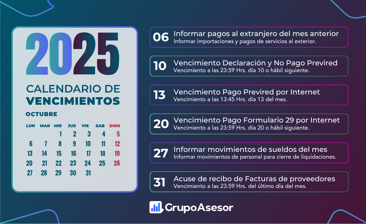 Estos vencimientos y fechas claves te ayudarán a mantener tus pagos, obligaciones y entregas al día, evitando multas y sanciones por parte de las administraciones tributarias y laborales.
